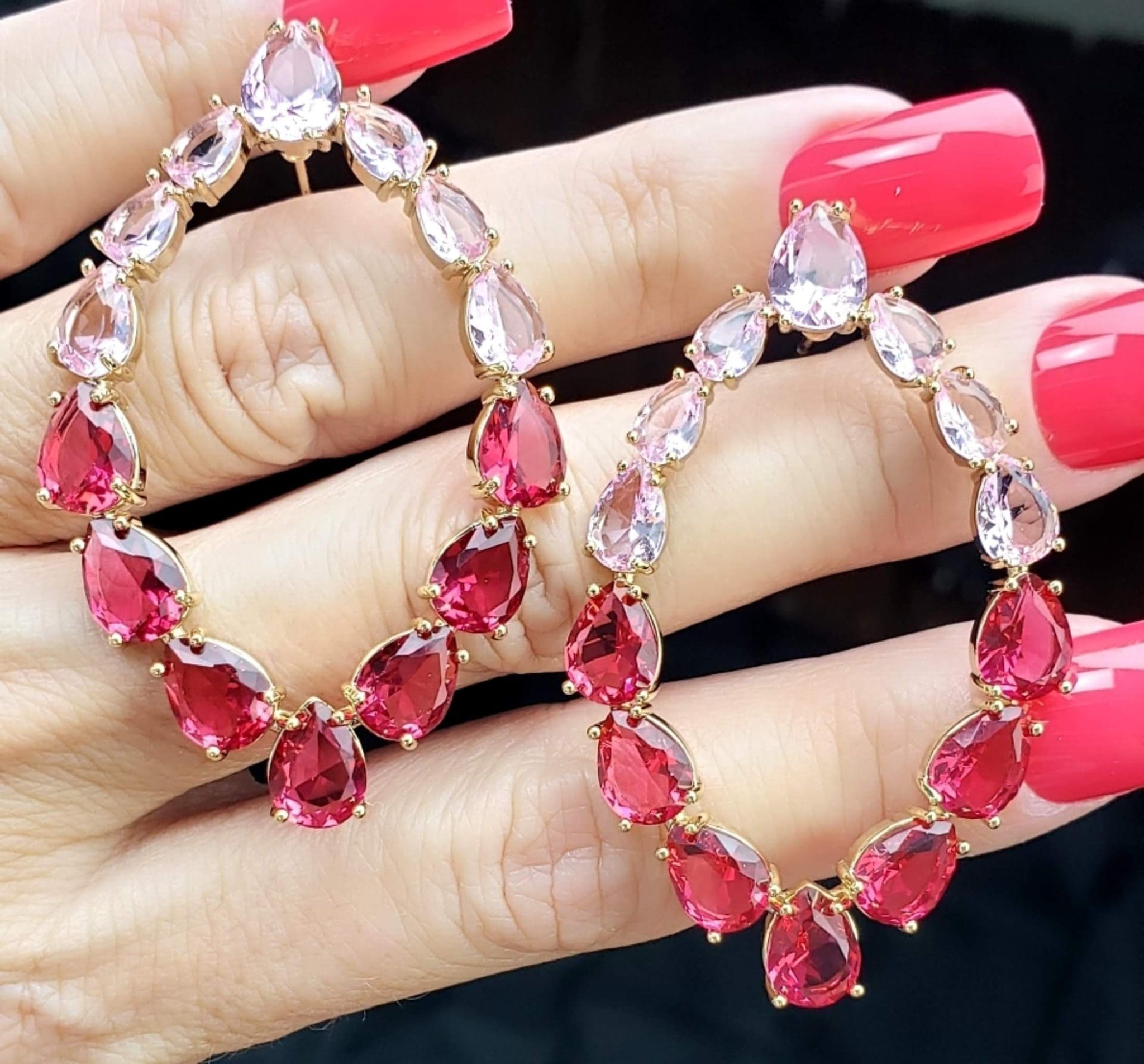 Brinco festa com gota de zircônia rosa claro e pink em banho de ouro 18k banho zircônia colar branca cristal Ágata hematita ponto pulseira dourada luxo premium exclusivo elegante sofisticado tendência
