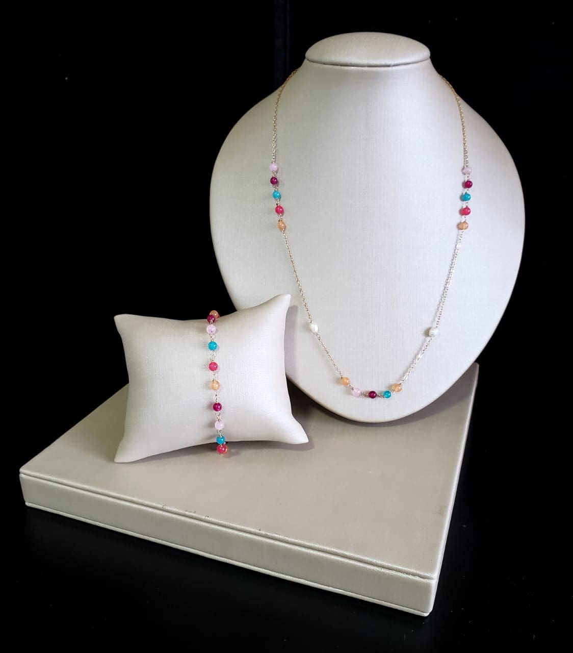Colar 50cm com pérola de água doce e jade colorida em banho de ouro 18k banho zircônia colar branca cristal Ágata hematita ponto pulseira dourada luxo premium exclusivo elegante sofisticado tendência
